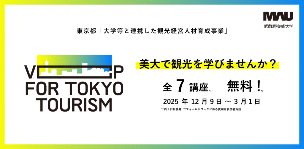 昨年度に続き第二回目となる、武蔵野美術大学が開発している「価値創造⼈材育成プログラム」(以下、 VCP)を、観光経営事業者を対象として開発・展開したプログラム「VCP for TOKYO Tourism」を開催します。